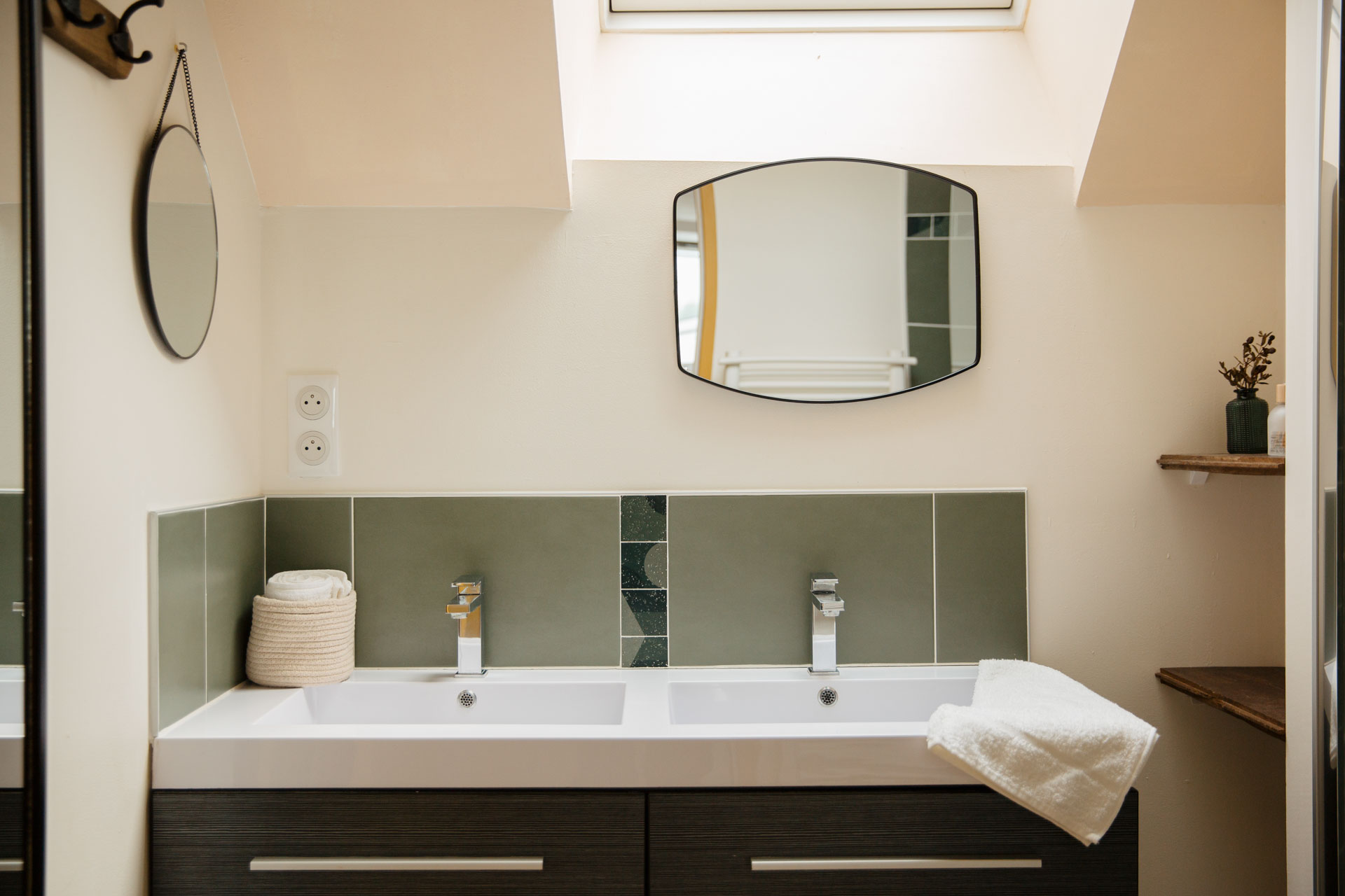 • 2ème chambre duplex avec mezzanine (4 personnes, 2 lits de 180 pouvant être séparés en 4 lits de 90)